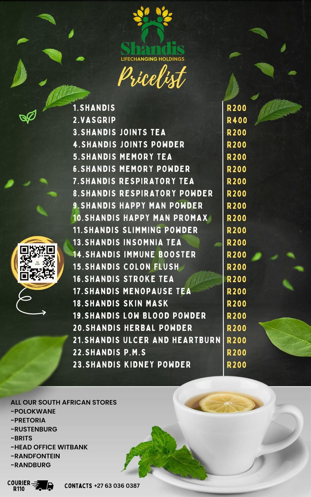 Shandis Lifechanging Holdings PTY-LTD was established in August 2023. We are based in Witbank, also known as Emalahleni. We have 10 Branches across the country. The name Shandis is derived from customer feedback, so a client who used our remedies and didn’t want people to know our secret will just say that Shandis, you gave me worked.”Re aga malapa, meaning we are uniting families.